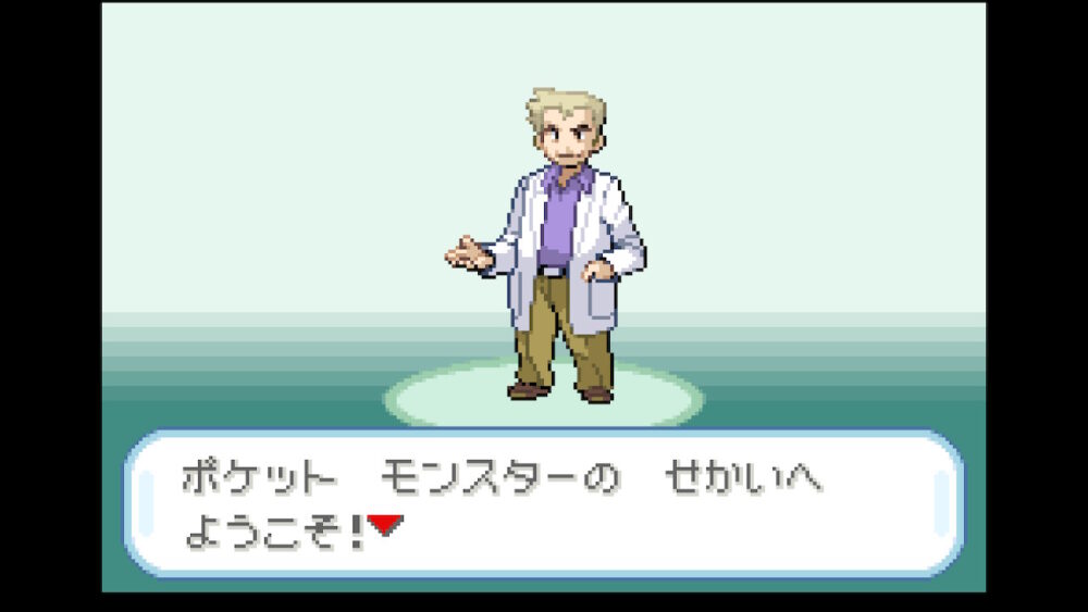 そして覚えのあるオーキド博士が出てきて、ポケモンの世界について教えてくれます。