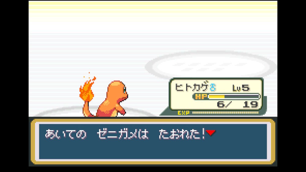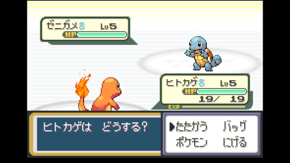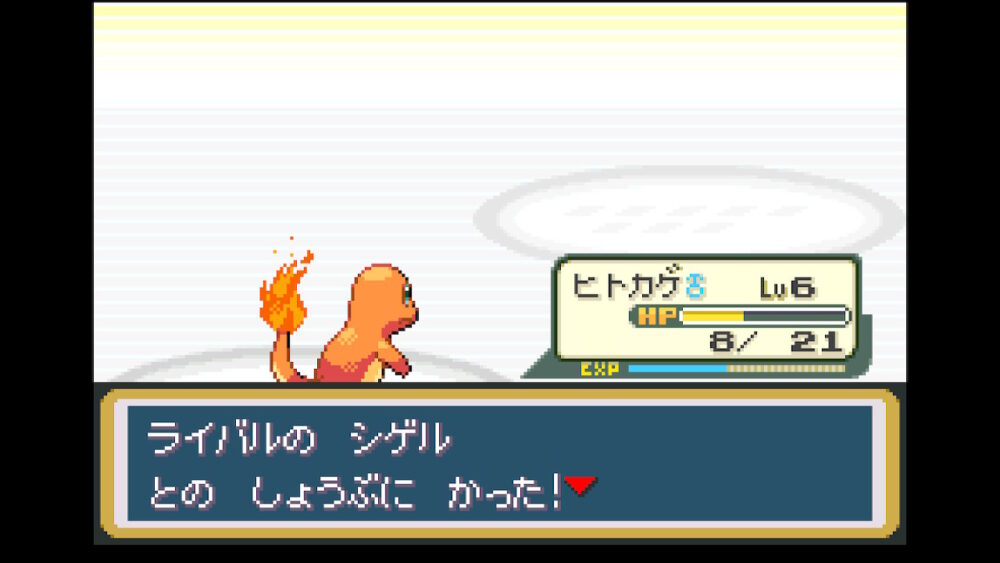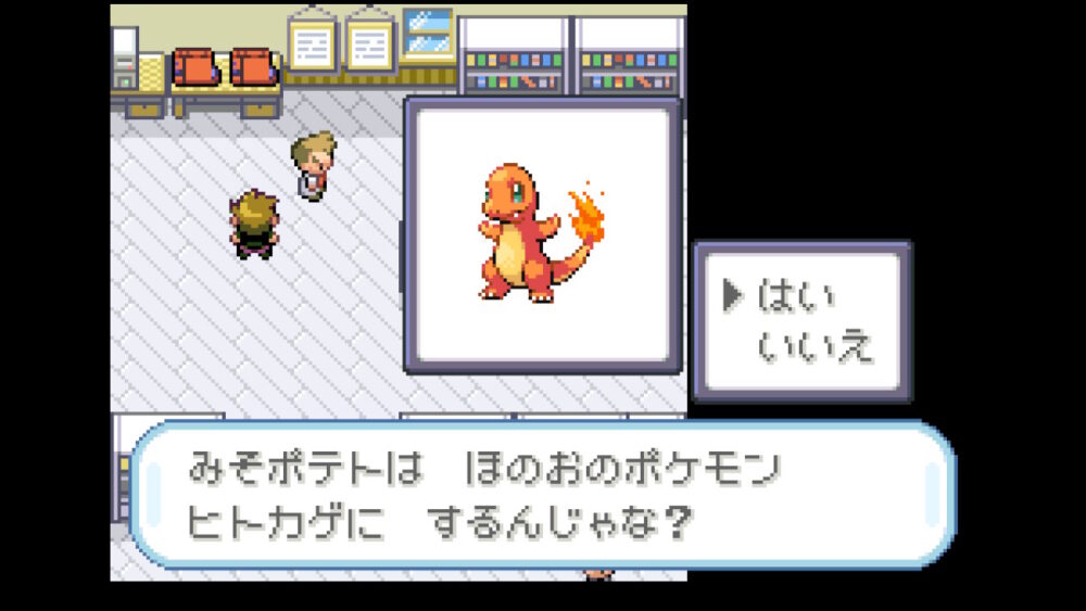 自分の場合は、ほのおポケモンの『ヒトカゲ』を選んでいるので、ライバルはみずポケモンの『ゼニガメ』になります。
