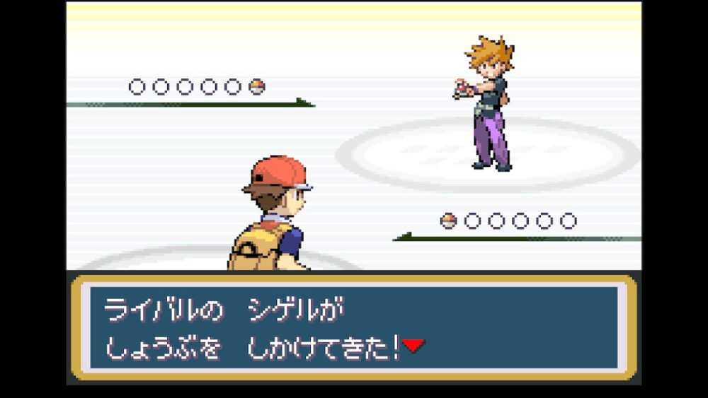 博士からポケモンをもらうと、早速ライバルとのポケモンバトルになります。