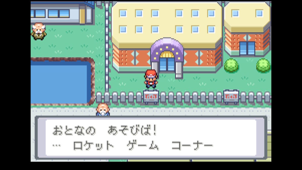 「ゲームコーナー」ではスロットで遊ぶことができ、獲得したコインは隣の換金所でわざマシンやポケモンと交換することができます。