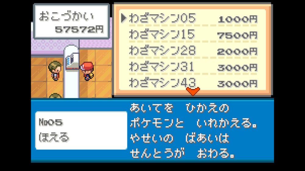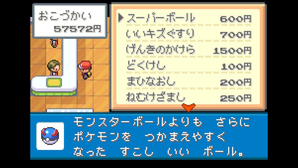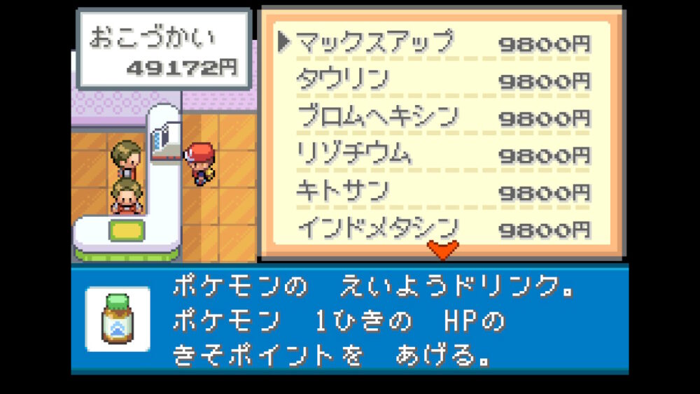 「タマムシデパート」5階は「マックスアップ」などのドーピングアイテムや、「プラスパワー」などの戦闘用アイテムを購入することができます。