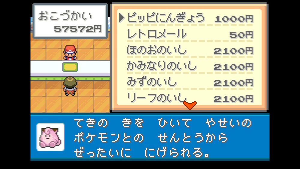 「タマムシデパート」4階は「ピッピにんぎょう」や進化の石を購入することができます。