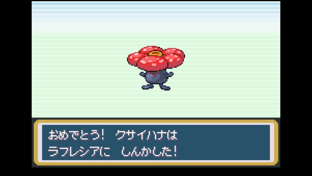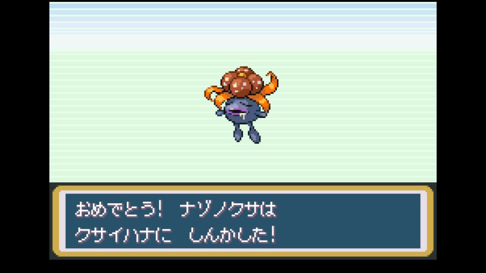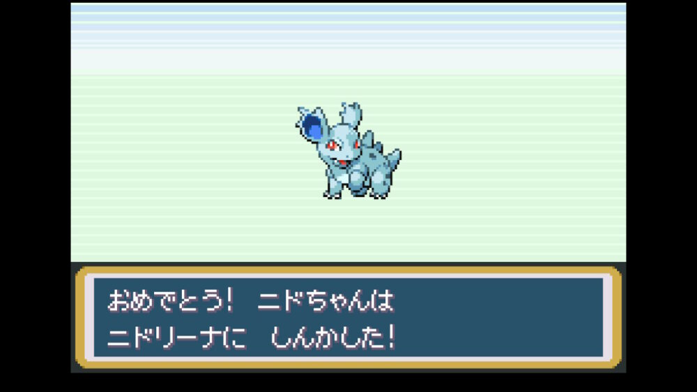 『リザード』と『ピジョン』のレベル上げをしながら、ボックスに預けていたポケモンのレベル上げを行っていたら、『コラッタ』が『ラッタ』に、『アーボ』が『アーボック』に、『ニドちゃん(ニドラン♀)』が『ニドリーナ』に、『ナゾノクサ』が『クサイハナ』に進化しました。