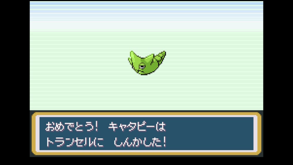 「トキワのもり」では、『ビードル』と『キャタピー』に加えて、それぞれ進化系の『コクーン』と『トランセル』も出現します。