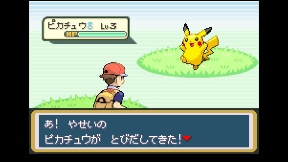 出現率は極めて低いですが、序盤では貴重な電気ポケモンの『ピカチュウ』のゲットを目指します!オーキド博士にもらう最初の3匹で『ヒトカゲ』を選んだ人の宿命でもありますが、2番目のジムリーダーが水ポケモンなので大苦戦します。そこで活躍してもらうためにも電気ポケモンの『ピカチュウ』が重要になります。